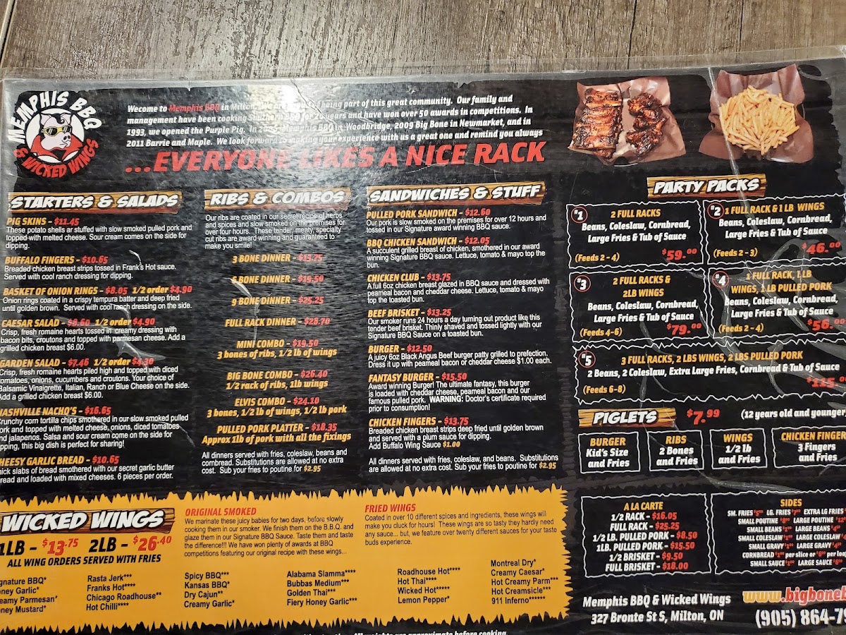 Introducing the delicious menu of Memphis BBQ & Wicked Wings, located at 327 Bronte St. S, Milton, ON. This vibrant eatery excels in serving a mouthwatering array of BBQ specialties and crispy chicken wings that keep patrons coming back for more.